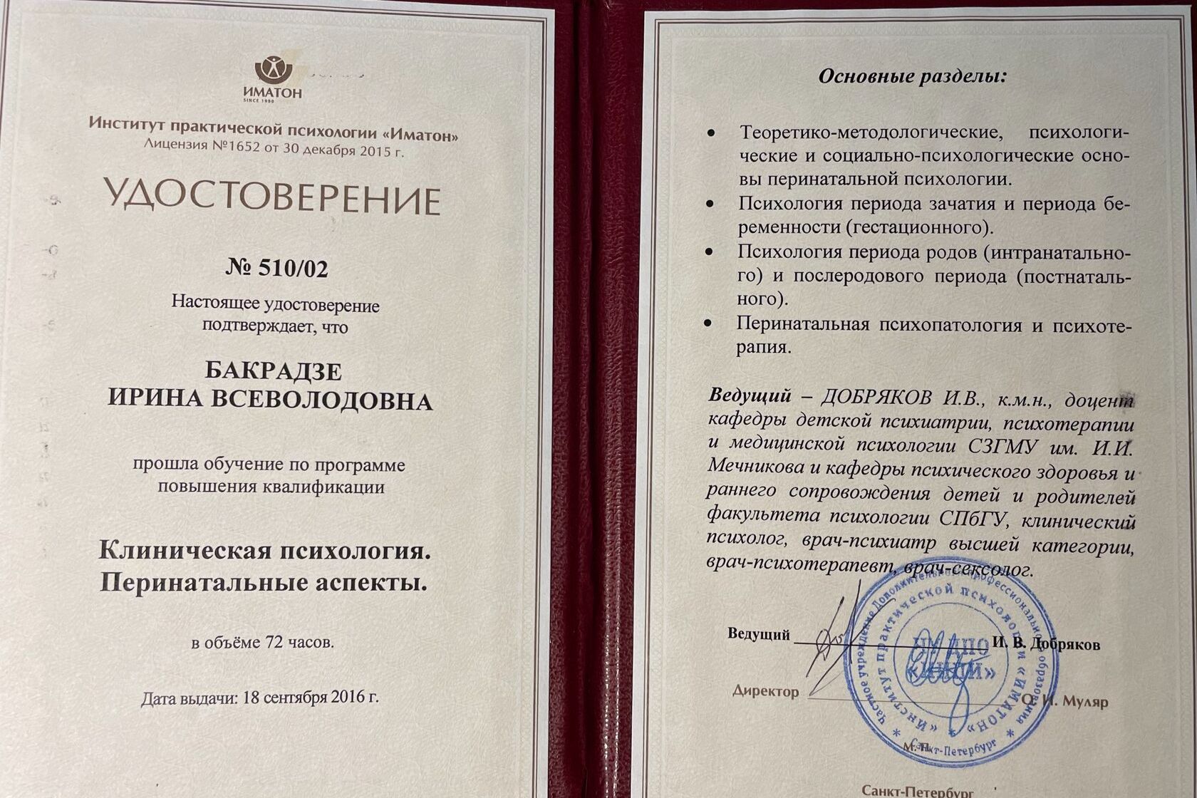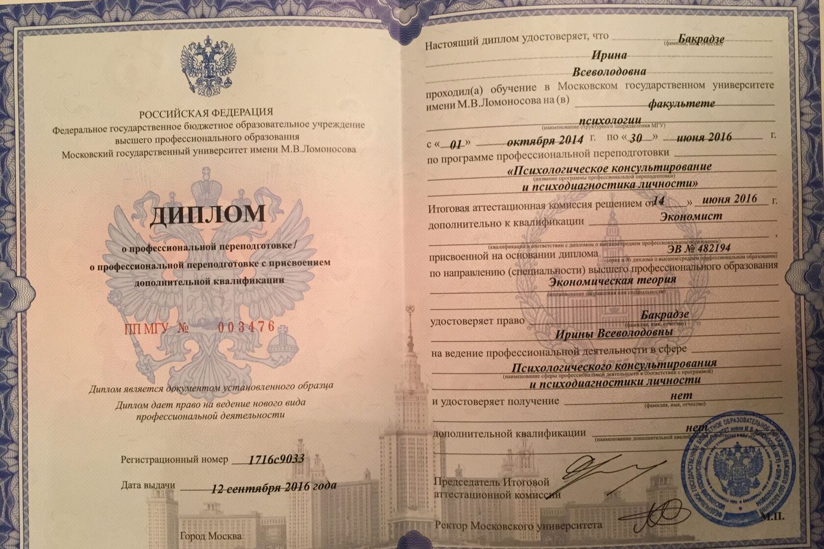 Психологии МГУ им. Ломоносова по специальности «Психодиагностика и психологическое консультирование».
